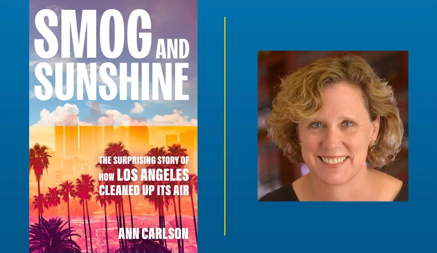 I'm excited to share that my friend Ann Carlson (a longtime RTG subscriber) has a new book describing the partnership between the public and our government to eliminate the smog she grew up with here in LA. Ann is a professor of law at UCLA and a very compelling speaker. Smog and Sunshine: The Surprising Story of How Los Angeles Cleaned Up Its Air is an inspiring environmental success story. Think about it - we haven’t had a smog alert here since 2003! You can hear her talk about the book at UCLA on April 10 at 12:15 pm (register here) or at Chevalier Books on April 28.